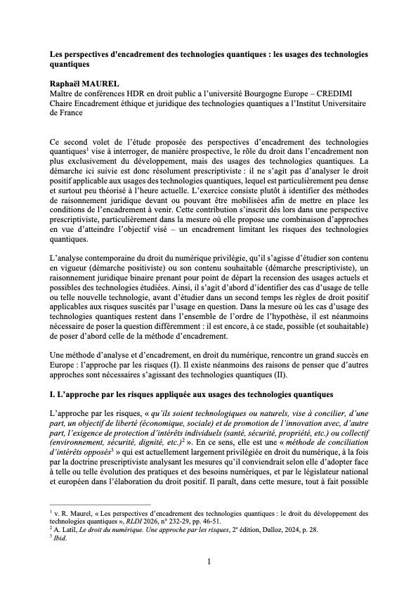 R. Maurel, "Les perspectives d’encadrement des technologies quantiques : les usages des technologies quantiques", Revue Lamy Droit de l'Immatériel, n°234, mars 2026, pp. 54-58.